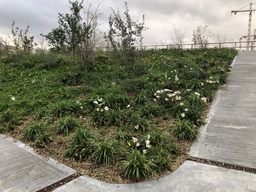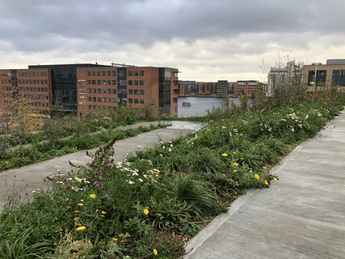 Grøn park over byen udnytter regnvandet og giver ly til dyreliv