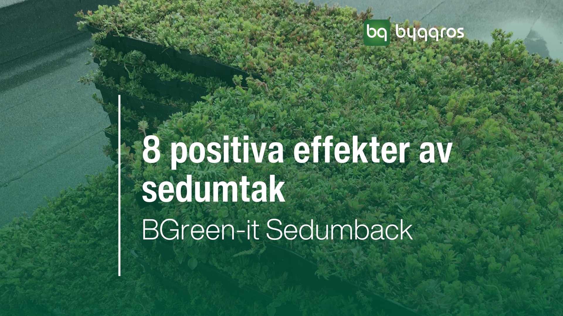 BGreen-it Sedumbakker (sedumbrett) legges direkte ut på takmembranen, opp mot hverandre, og gir et ferdigetablert grønt tak i en omgang. BGreen-it Sedumbakker (sedumbrett) er et danskutviklet og -produsert brettsystem som raskt og enkelt kan legges ut, direkte på takmembranen. Sedumbrettene kan brukes både på tak med helling fra 0-30° og er ideelle på tak som kun tåler en begrenset vekt og hvor det samtidig er ønskelig med høy artsvariasjon.