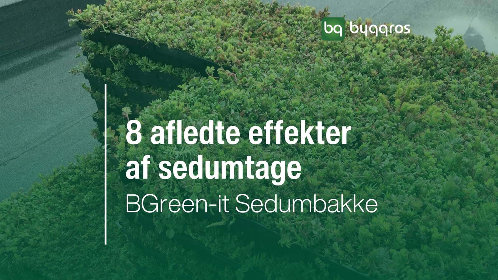 BGreen-it Sedumbakker (sedumbrett) legges direkte ut på takmembranen, opp mot hverandre, og gir et ferdigetablert grønt tak i en omgang. BGreen-it Sedumbakker (sedumbrett) er et danskutviklet og -produsert brettsystem som raskt og enkelt kan legges ut, direkte på takmembranen. Sedumbrettene kan brukes både på tak med helling fra 0-30° og er ideelle på tak som kun tåler en begrenset vekt og hvor det samtidig er ønskelig med høy artsvariasjon.