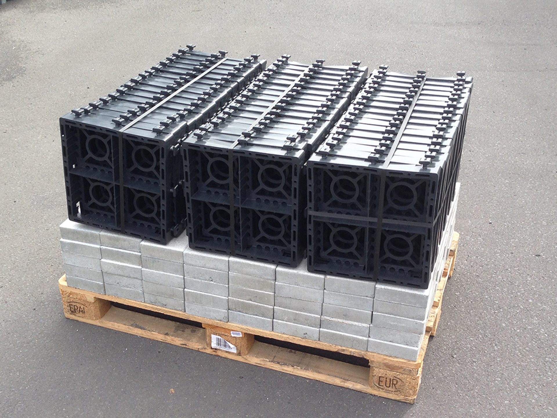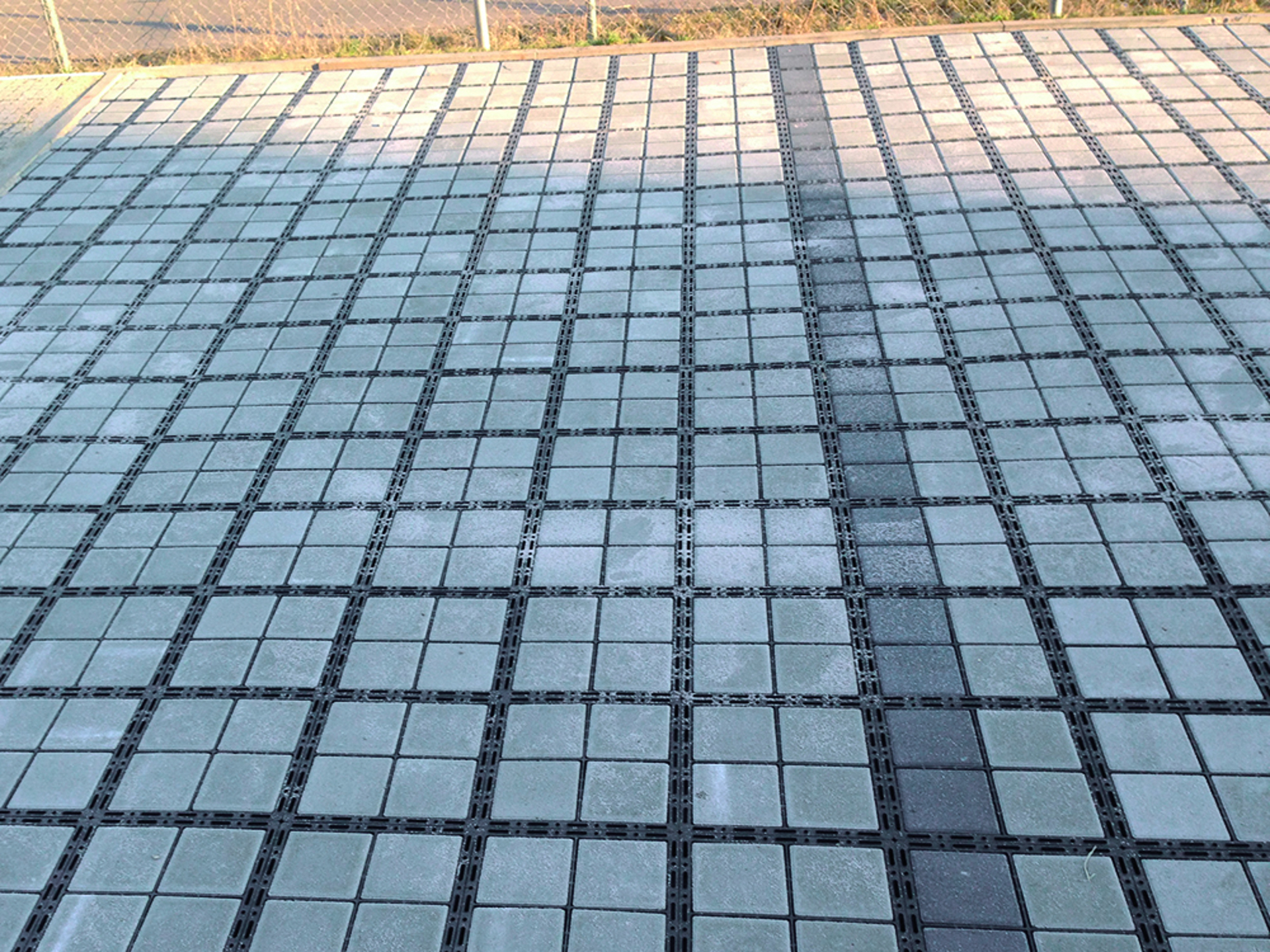 ECORASTER Bloxx leveres som sammenhægtede plader bestående af 12 blokke på i alt 1,33 m2. ECORASTER Bloxx pladerne tilpasses nemt med en vinkelsliber eller stiksav, og blokkenes store fleksibilitet og den lave vægt gør det nemt at udlægge ECORASTER Bloxx og skabe en flot og effektiv permeabel belægning. Vores erfaring viser, at én mand typisk kan udlægge 100 m2 ECORASTER Bloxx i timen - hertil kommer ilægning af betonfliser.