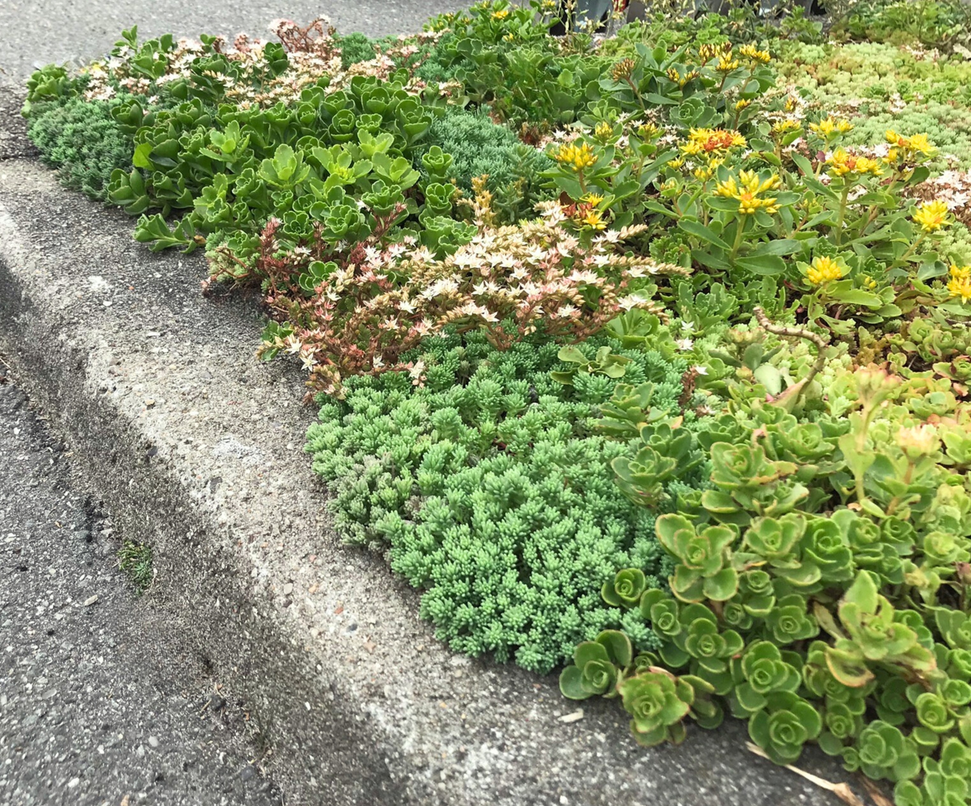 - Velegnet til højrisikoområder: Sedum er særligt anvendeligt i områder som rundkørsler, helleanlæg og smalle opdelinger på parkeringspladser, hvor arbejdssikkerheden er en udfordring, og det er svært at benytte maskiner.