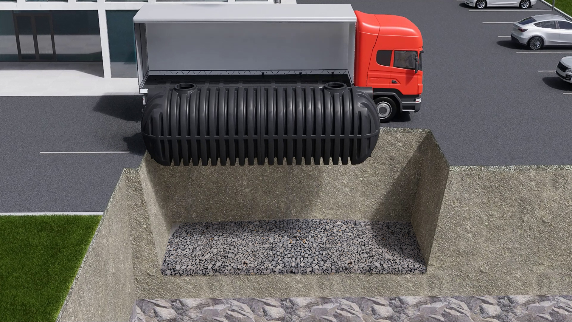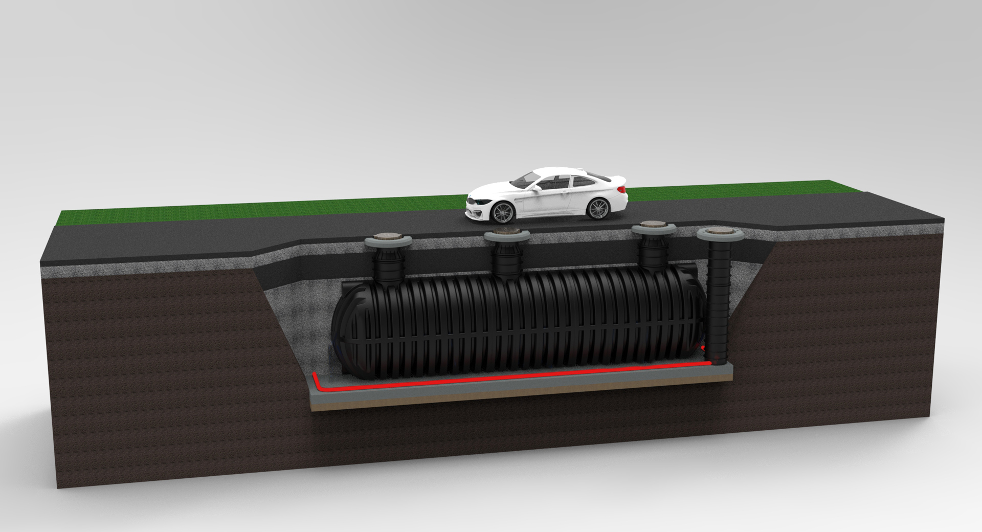RoDrive er den nye RoTerra tank, der er designet til nedgravning under arealer med trafikbelastning, såsom parkeringspladser, industriområder og lignende.