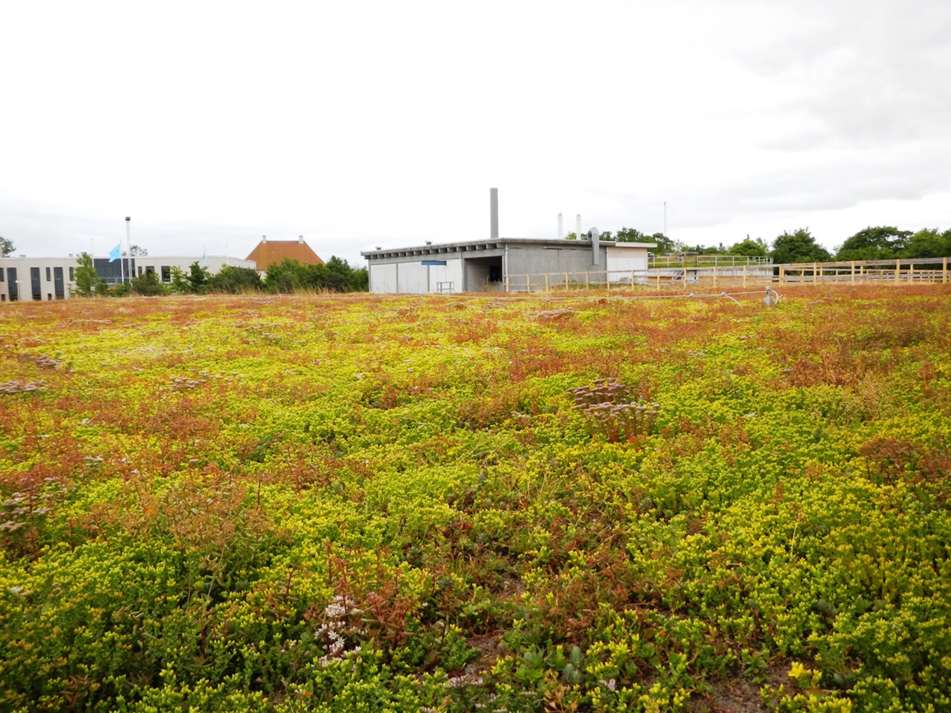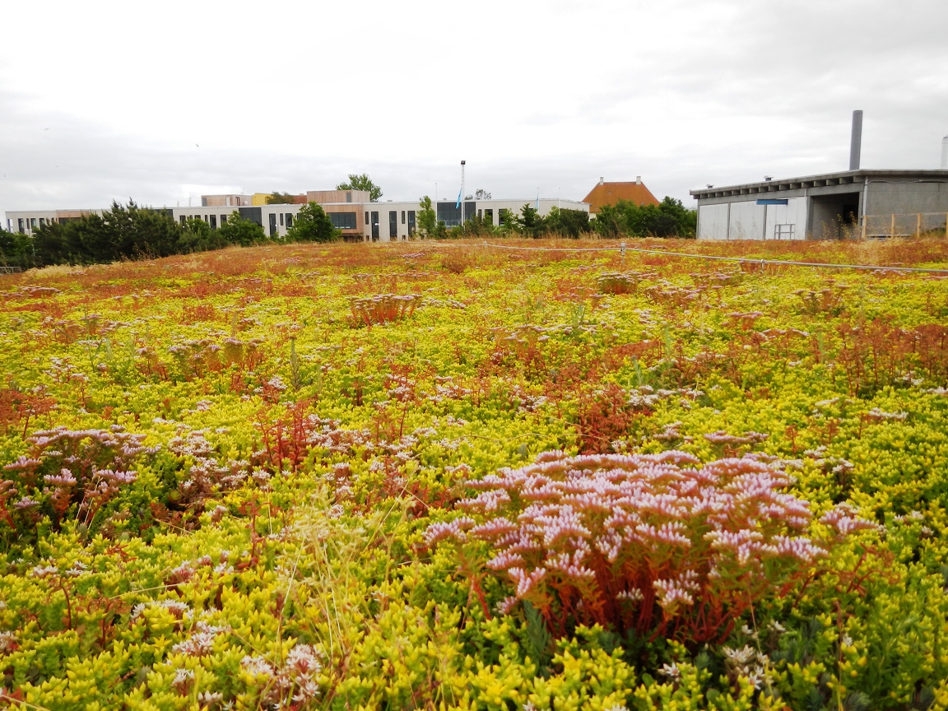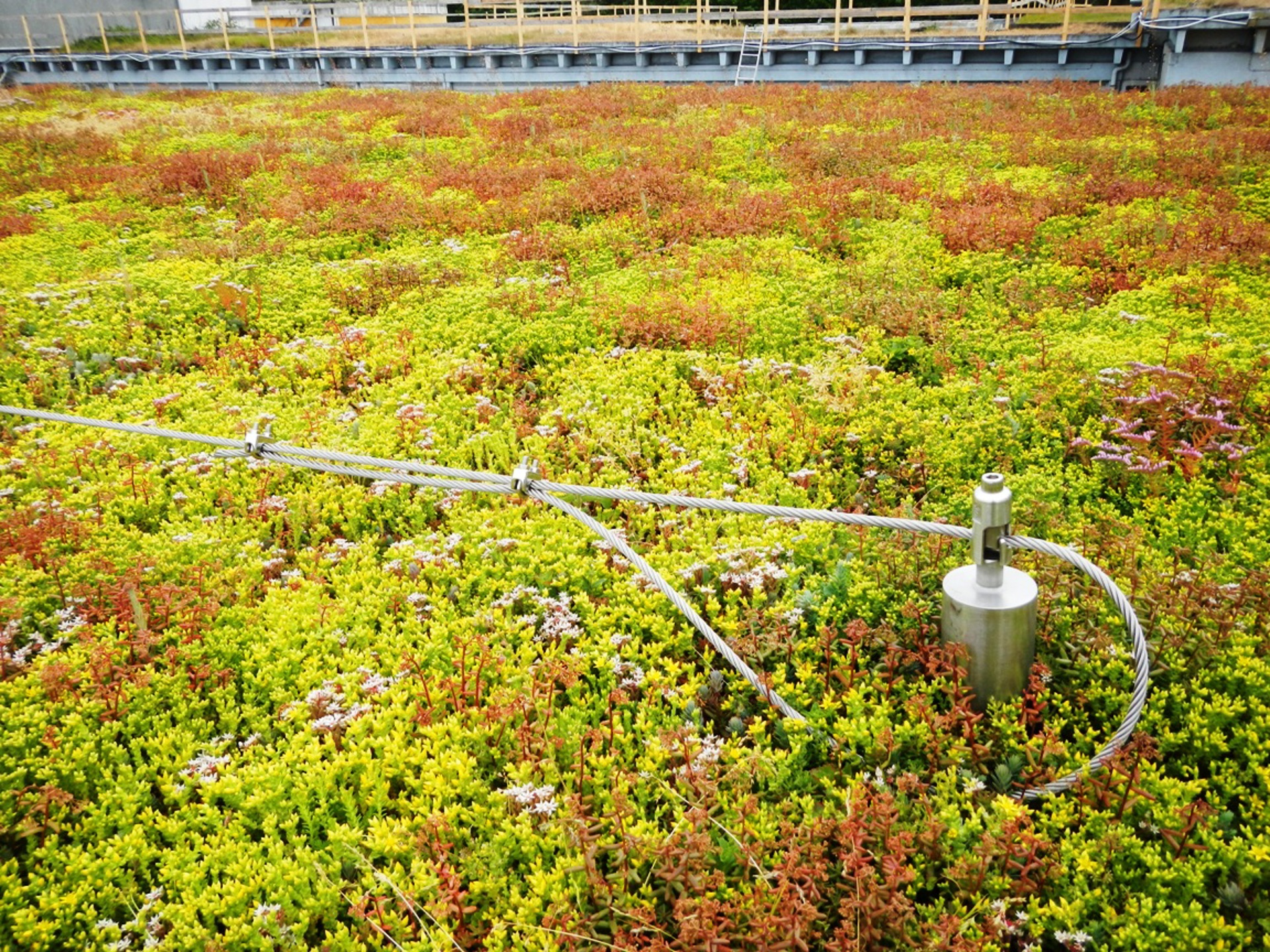 På Tårnby Forsyning har ett omfattande grönt sedumtak och ett FLG fallskyddssystem etablerats vid det befintliga besättningshuset. Det fanns en önskan om stor biologisk mångfald och den tillgängliga viktreserven låg på max. 110 kg/m².