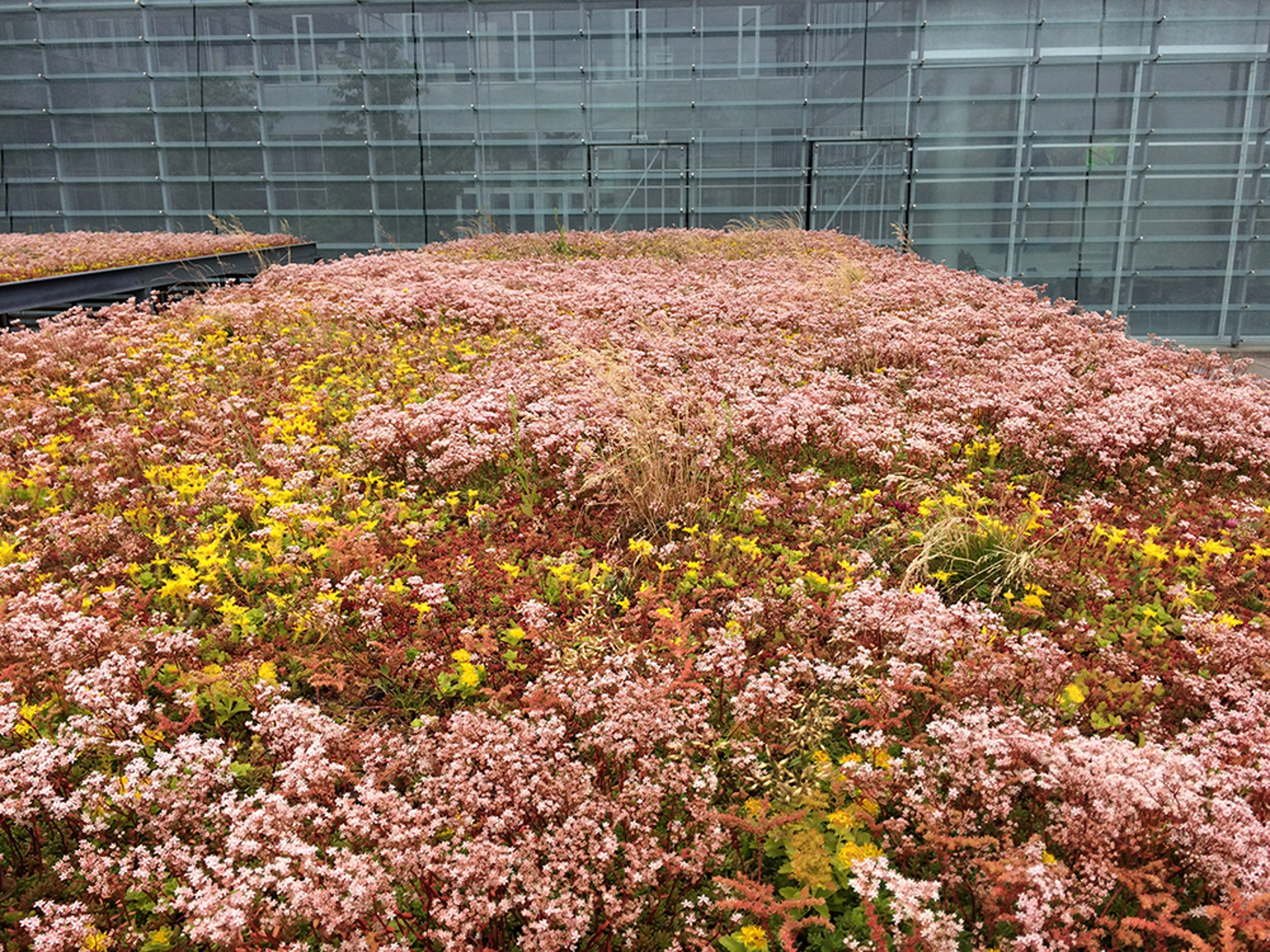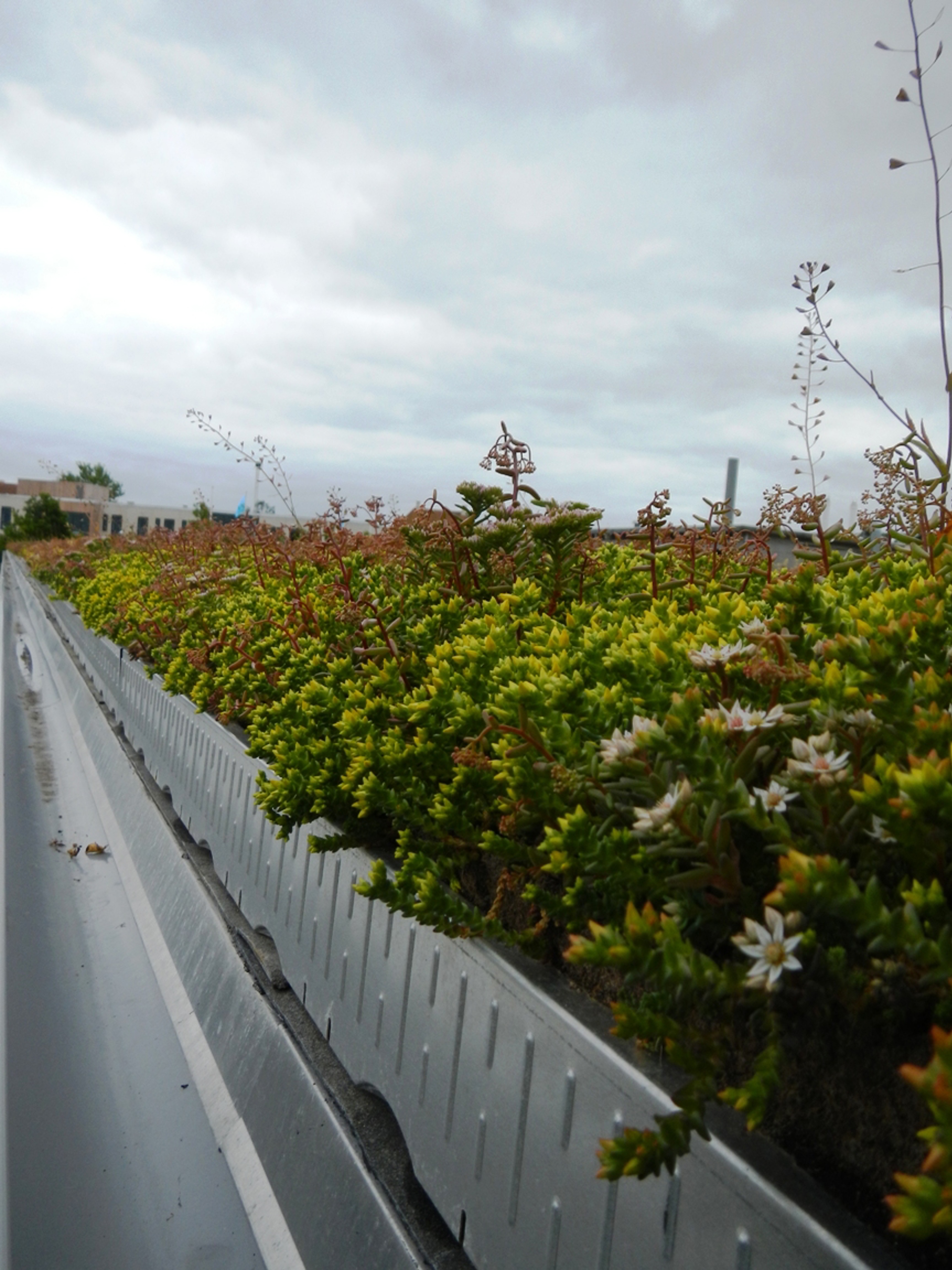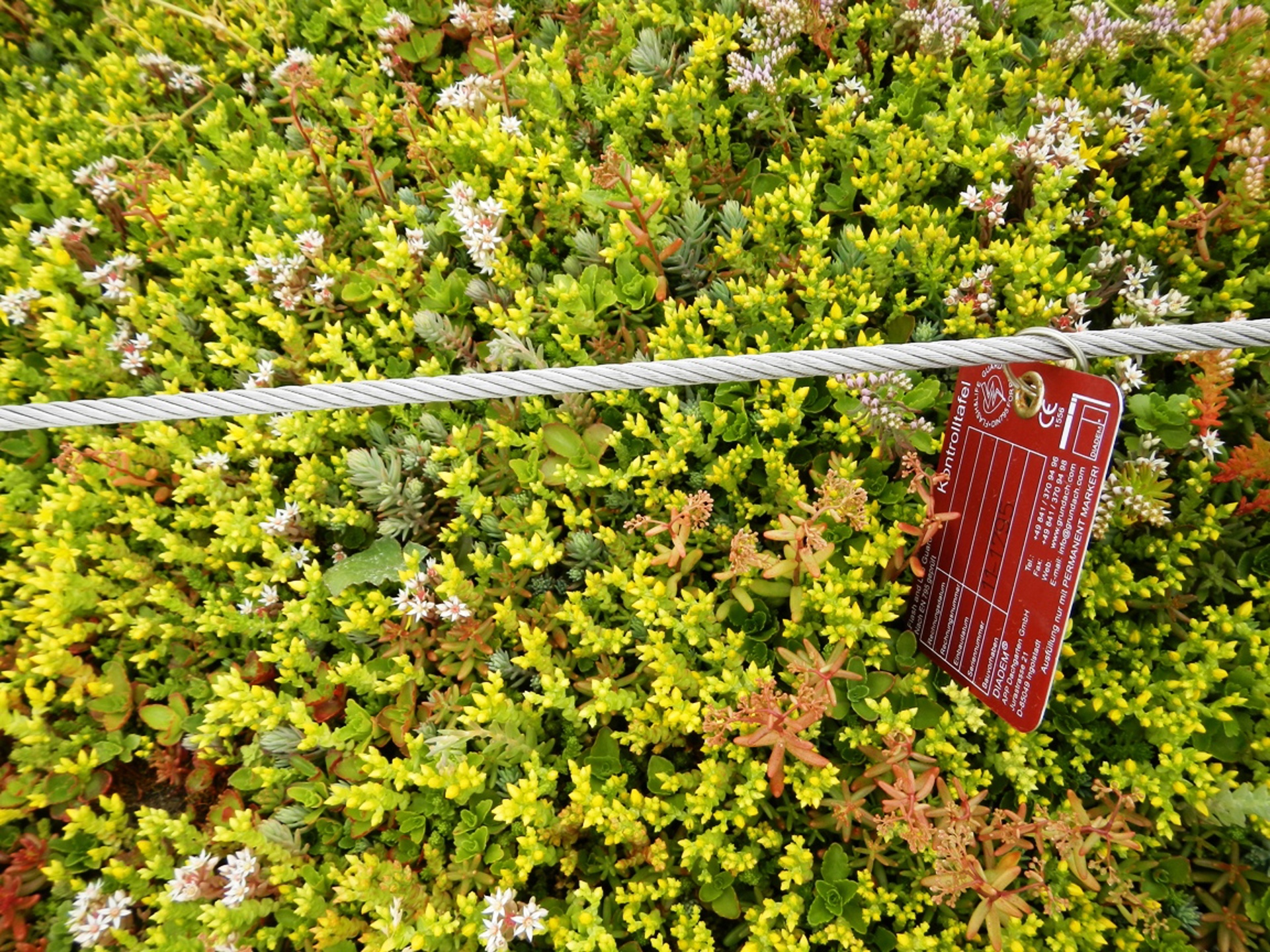 Frodigt grönt tak med torkatåliga växter