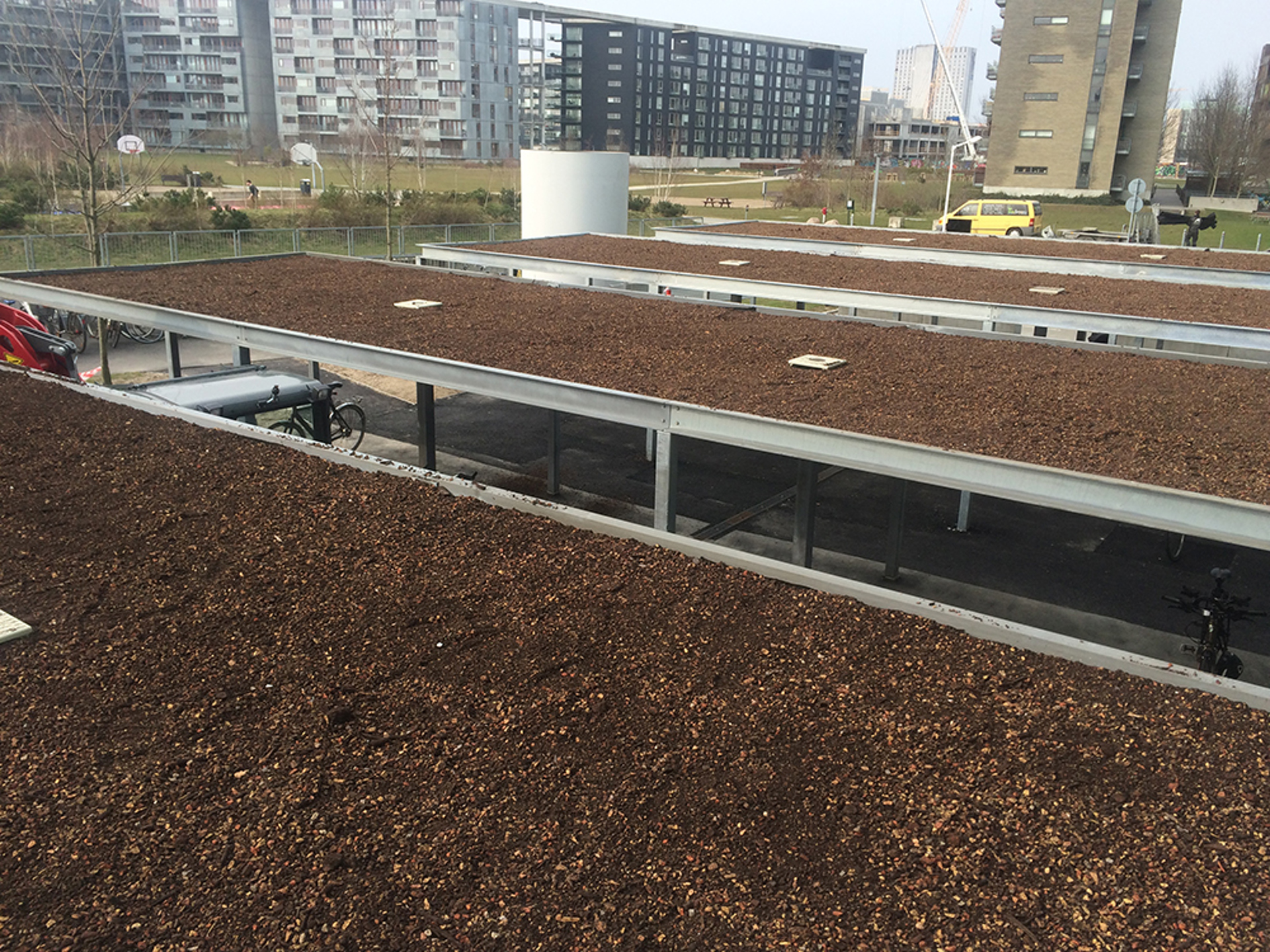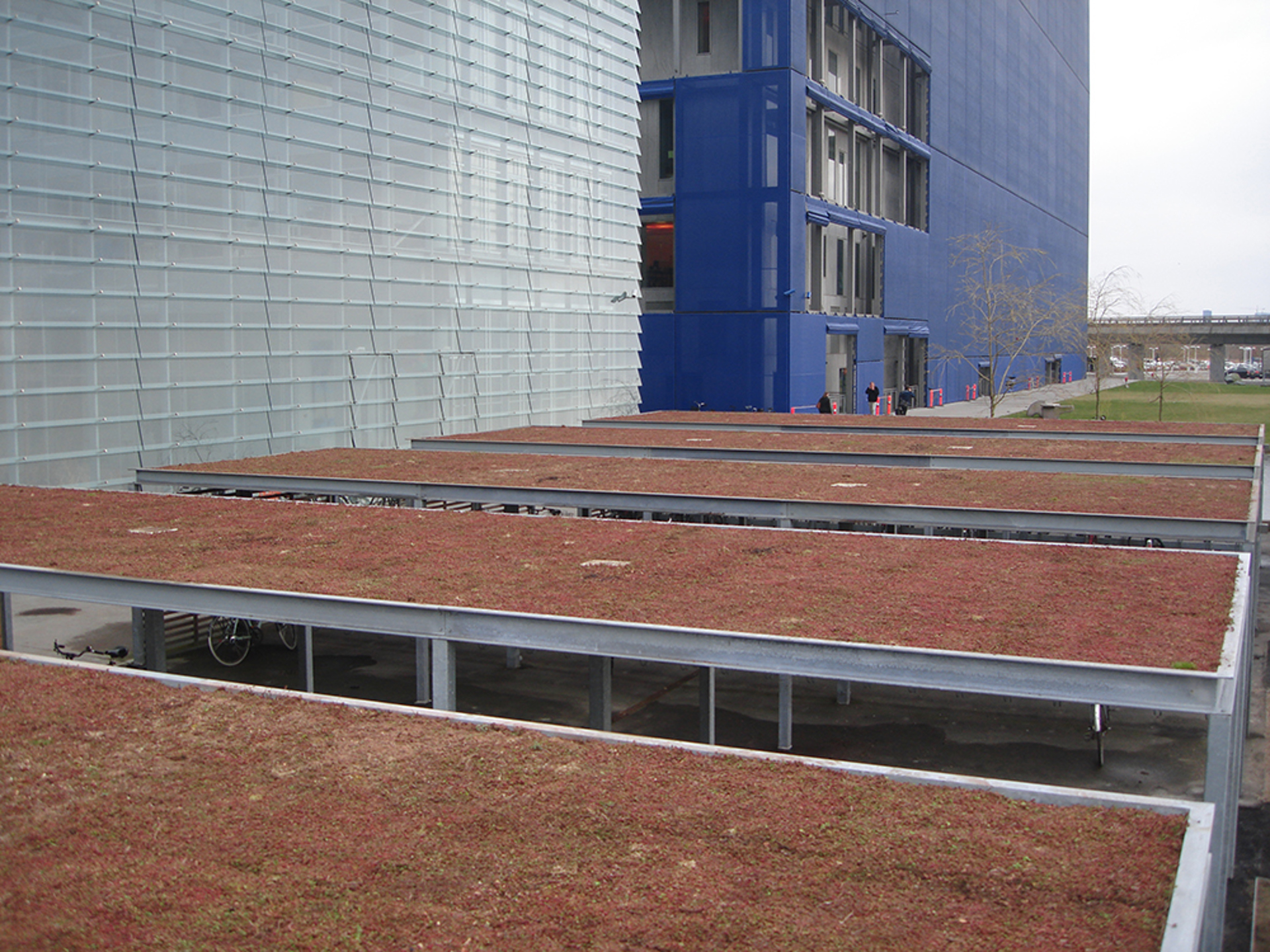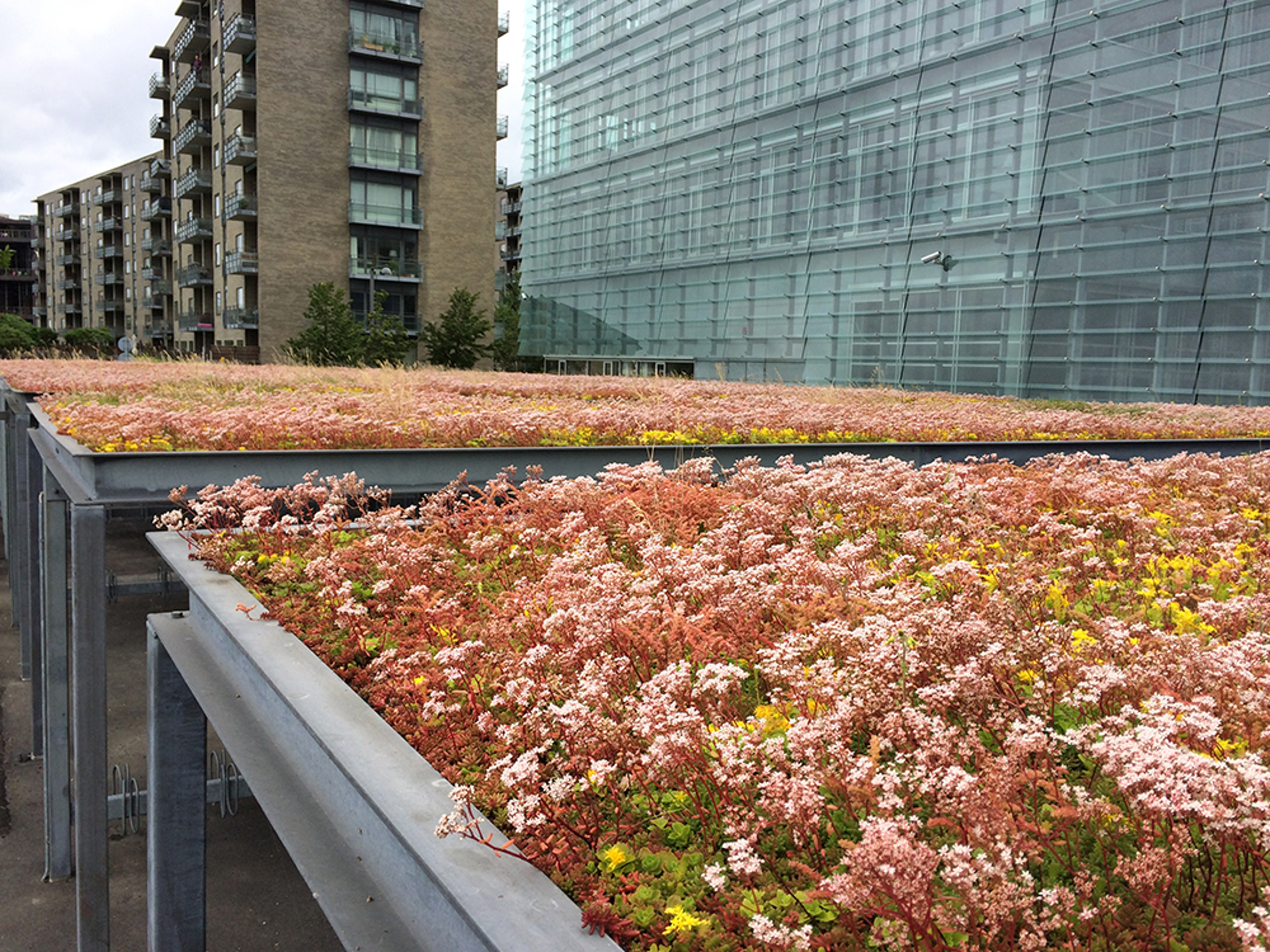 I DR Byen pryder nu BGreen-it sedumsystemet cykelskjulens tak som därmed fått ett frodigt och tilltalande utseende. En varierande färgprakt kan nu ses året om från de kringliggande byggnaderna.