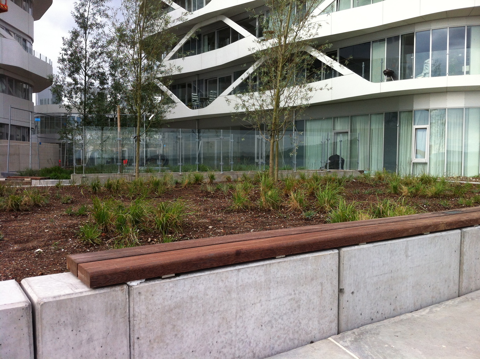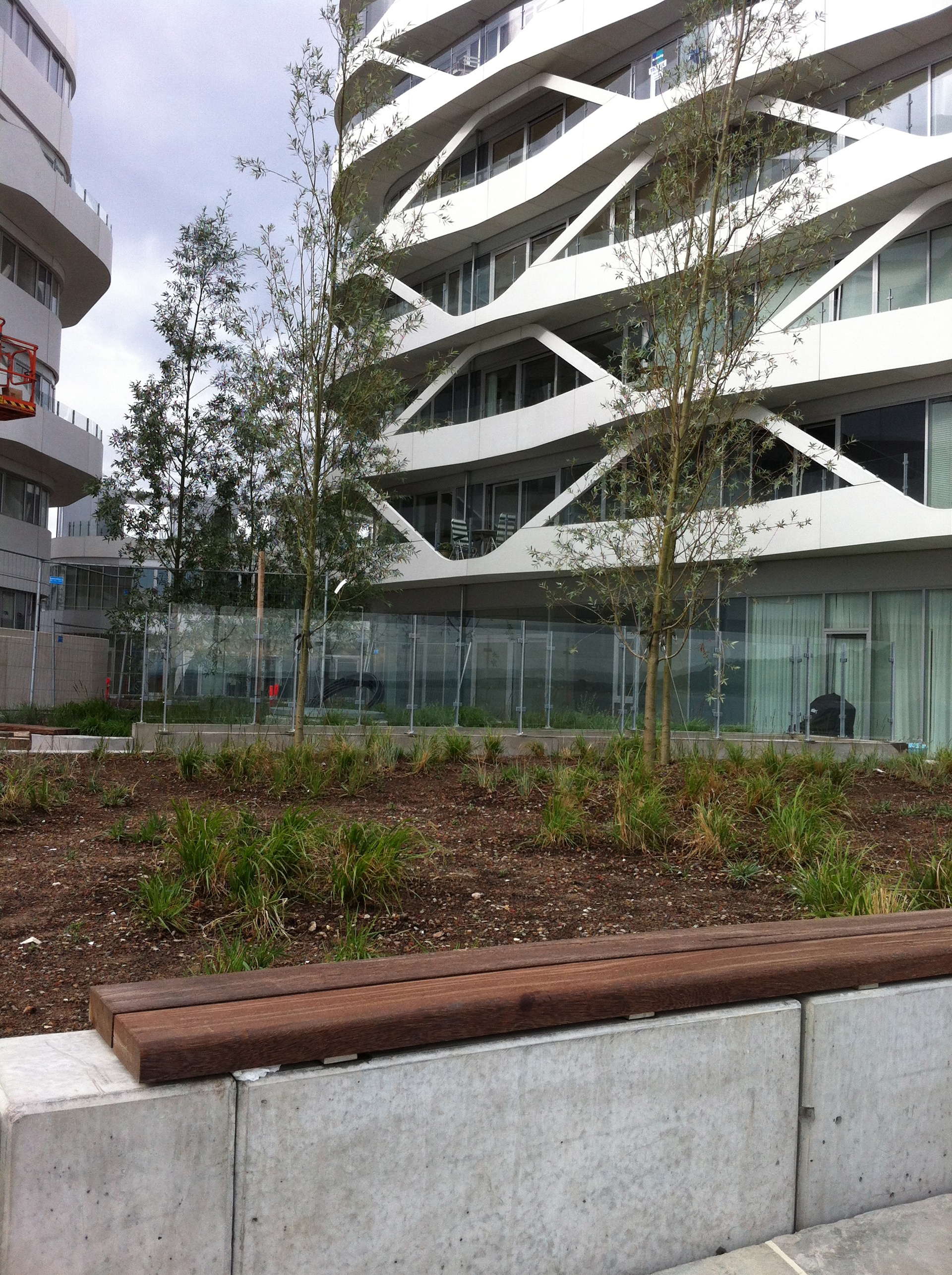 Uppbyggnad: Enkadrain dräneringsmattor är utlagda under 5500 m2 stigar, brandvägar och gräsarealer med makadamuppbyggnad som också är tilltänkt som brandväg. Diadem 350 är lagt under den resterande arealen med växtbädd (765 m²).