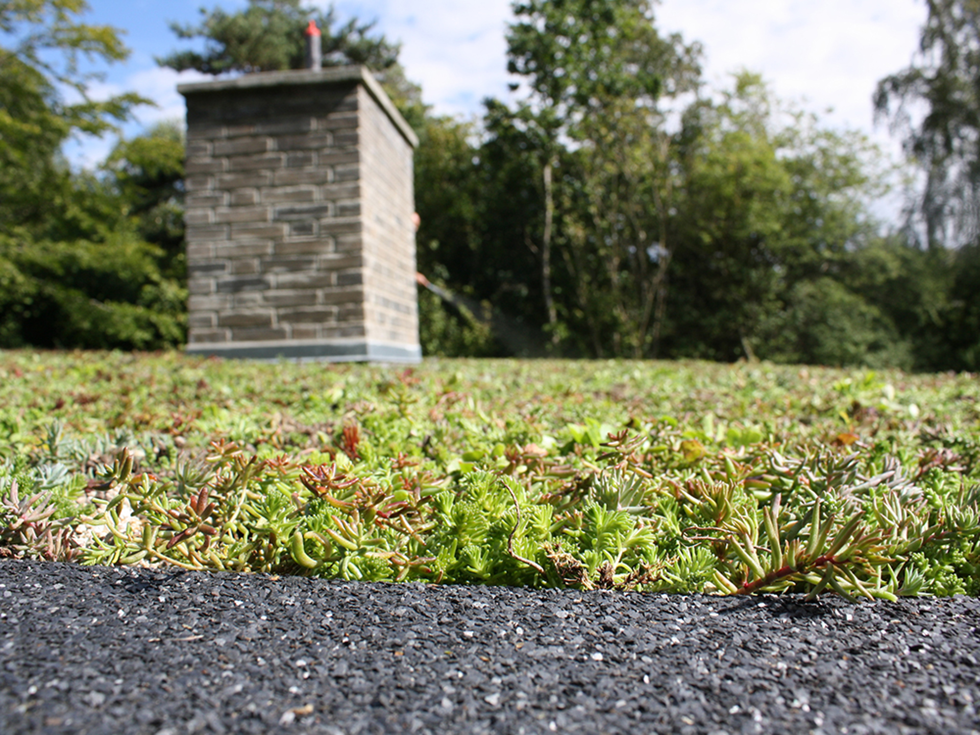 Stugans ägare i Fårevejle hade länge velat ha ett grönt tak som kunde skydda takmembranet, men som också kunde hjälpa till att hålla stugan sval när solens strålar är starka.På bara en förmiddag blev drömmen till verklighet med BGreen-it Sedumbackar. Med en läggningshastighet av cirka 40 m2 per timme per installatör blev det 150 m2 svagt sluttande taket täckt med sedumbackar på bara några timmar. Förutom att det går mycket snabbt att etablera ett grönt tak med sedumbackar blir det ett minimalt materialspill jämfört med ett klassiskt flerskiktssystem.