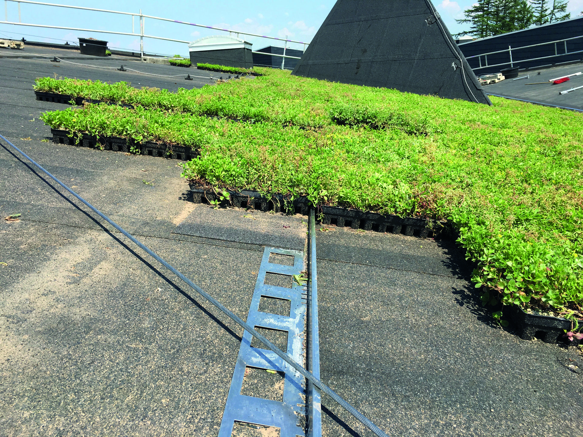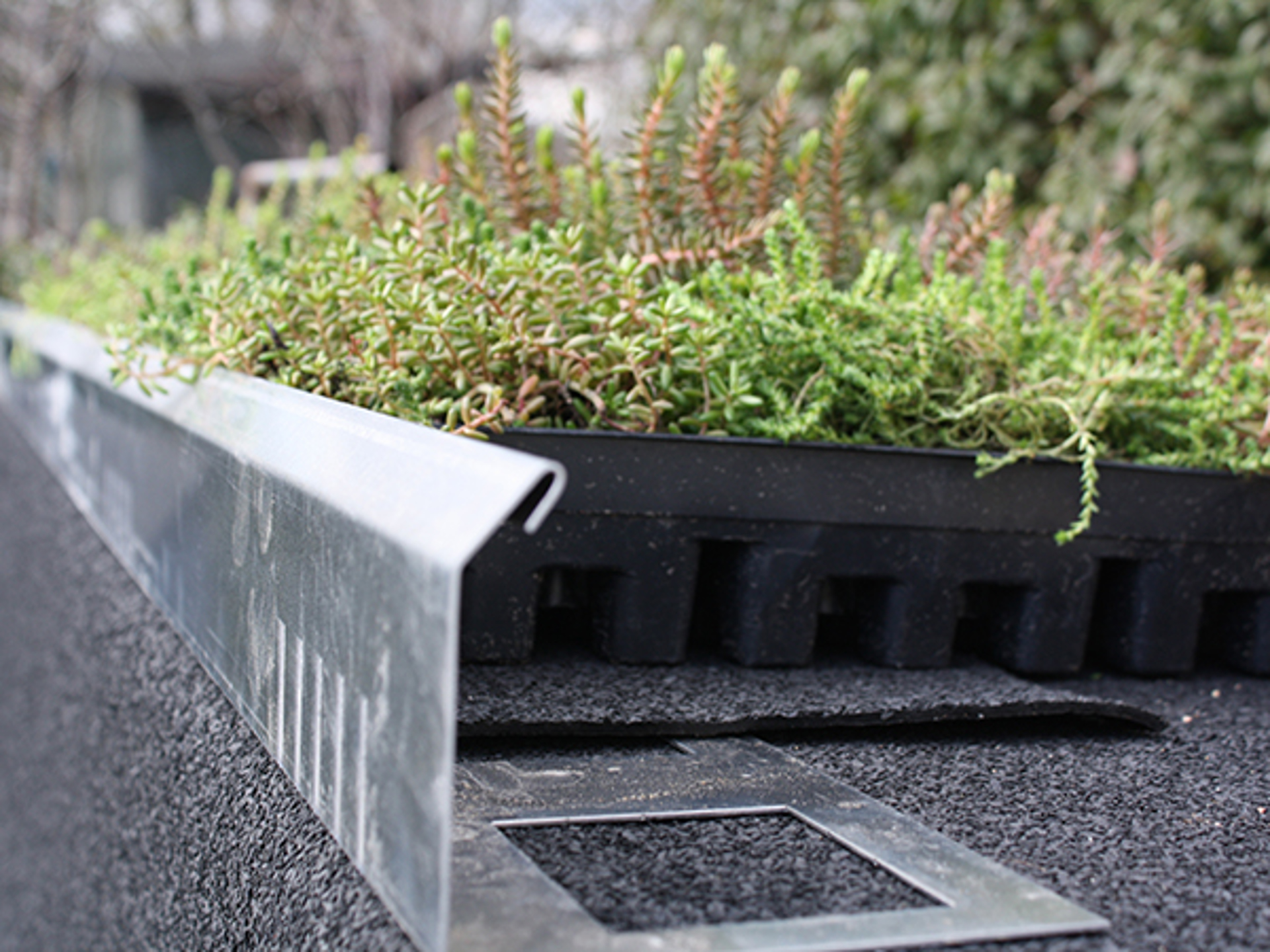 Det extensiva taket är inte lämpligt att beträda, men sedumplantor klarar belastning under underhållsarbete. Rotspärrsfolie eller rothämmande tätskikt kan exkluderas under BGreen-it Sedumback om det finns en underhållsplan för taket.