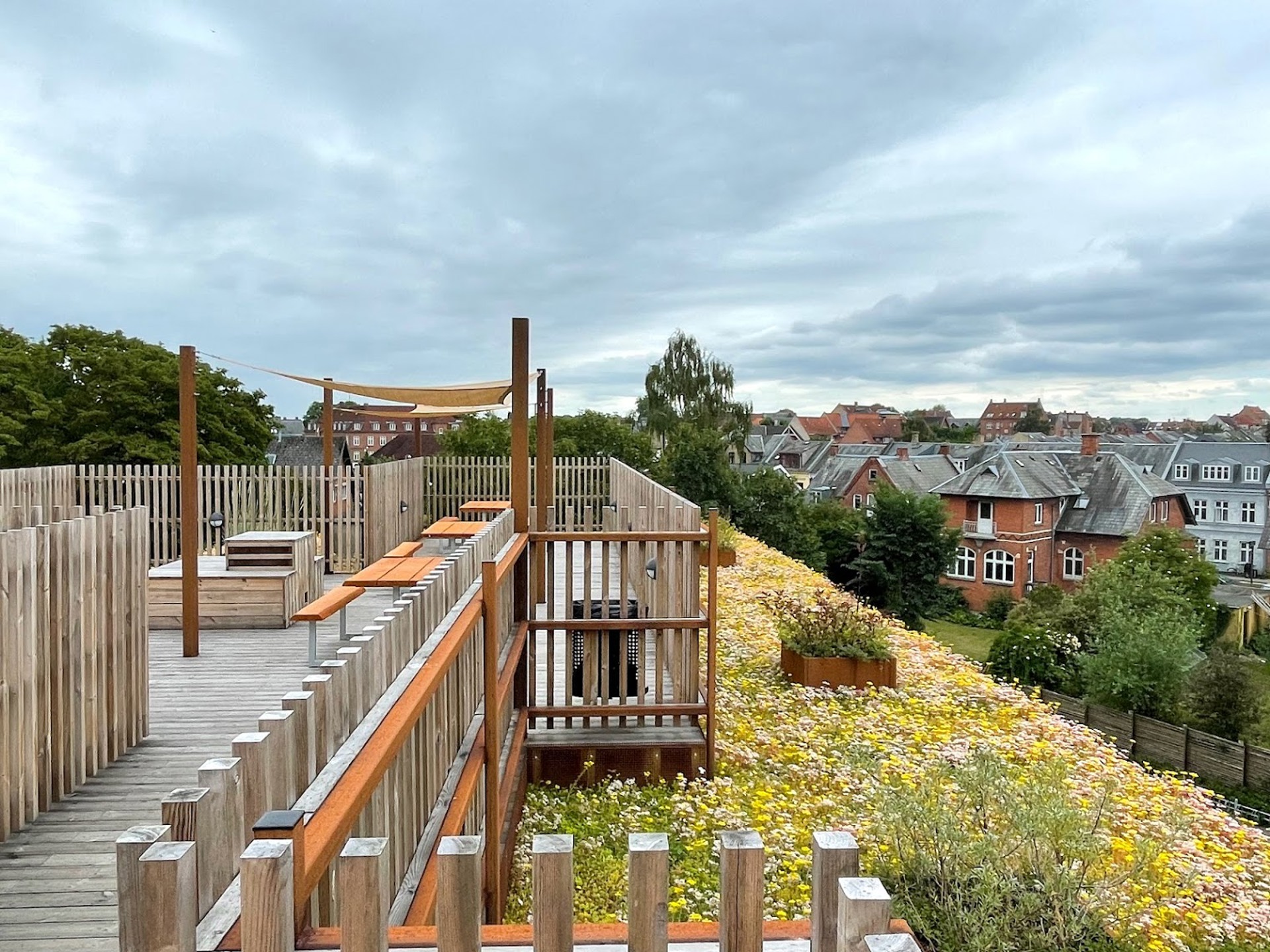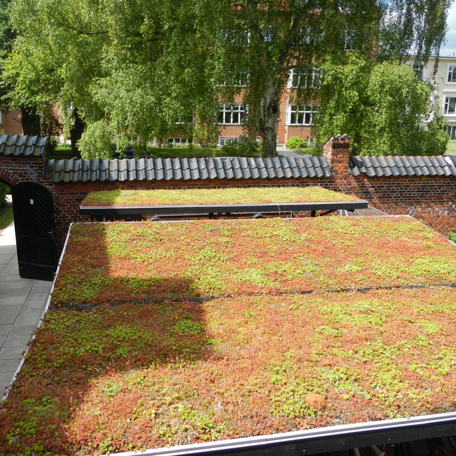 Denna uppbyggnad ger en vacker och frodig takträdgård med gräs, perenner, buskar och träd