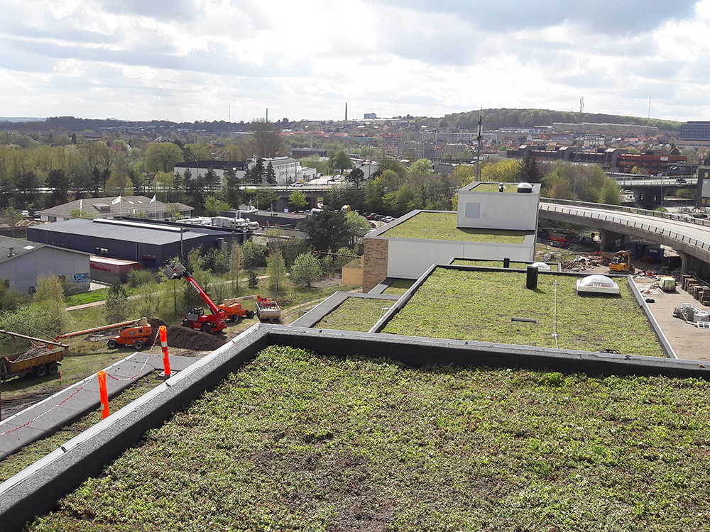 I nära samarbete med entreprenören, N. Buus & Co, har BG Byggros konstruerat och levererat DiaDrain dräneringsplattor och BGreen-it Sedumbackar. DiaDrain-avloppsplattorna fungerar både som dränering och dagvattenhantering.